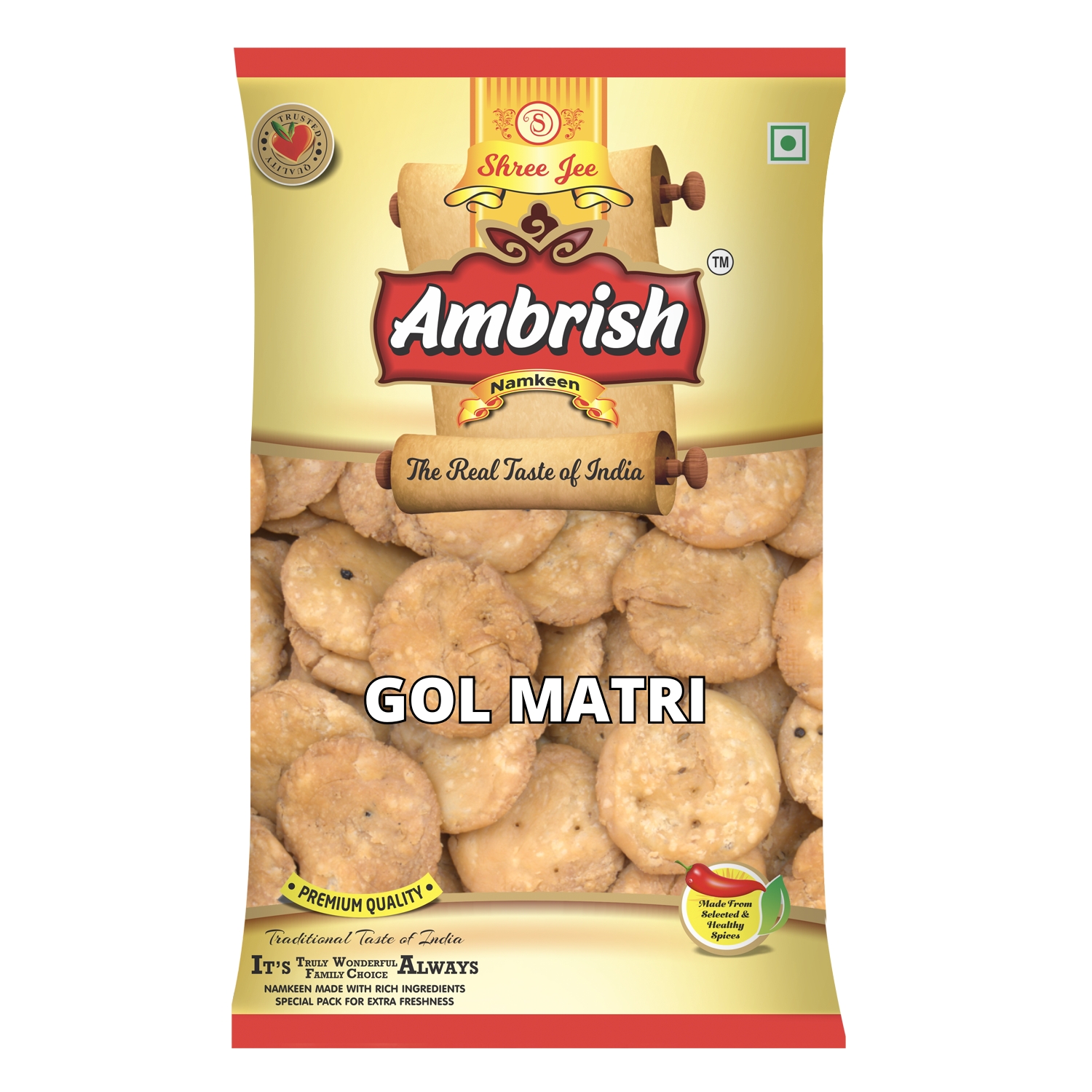 Gol Matri (also spelled Gol Mathri) is a classic North Indian savory tea-time snack — a round, crispy, flaky cracker that’s both satisfying and traditional. It’s similar to mathri, a popular Indian snack often served with tea, pickles, or enjoyed on its own.