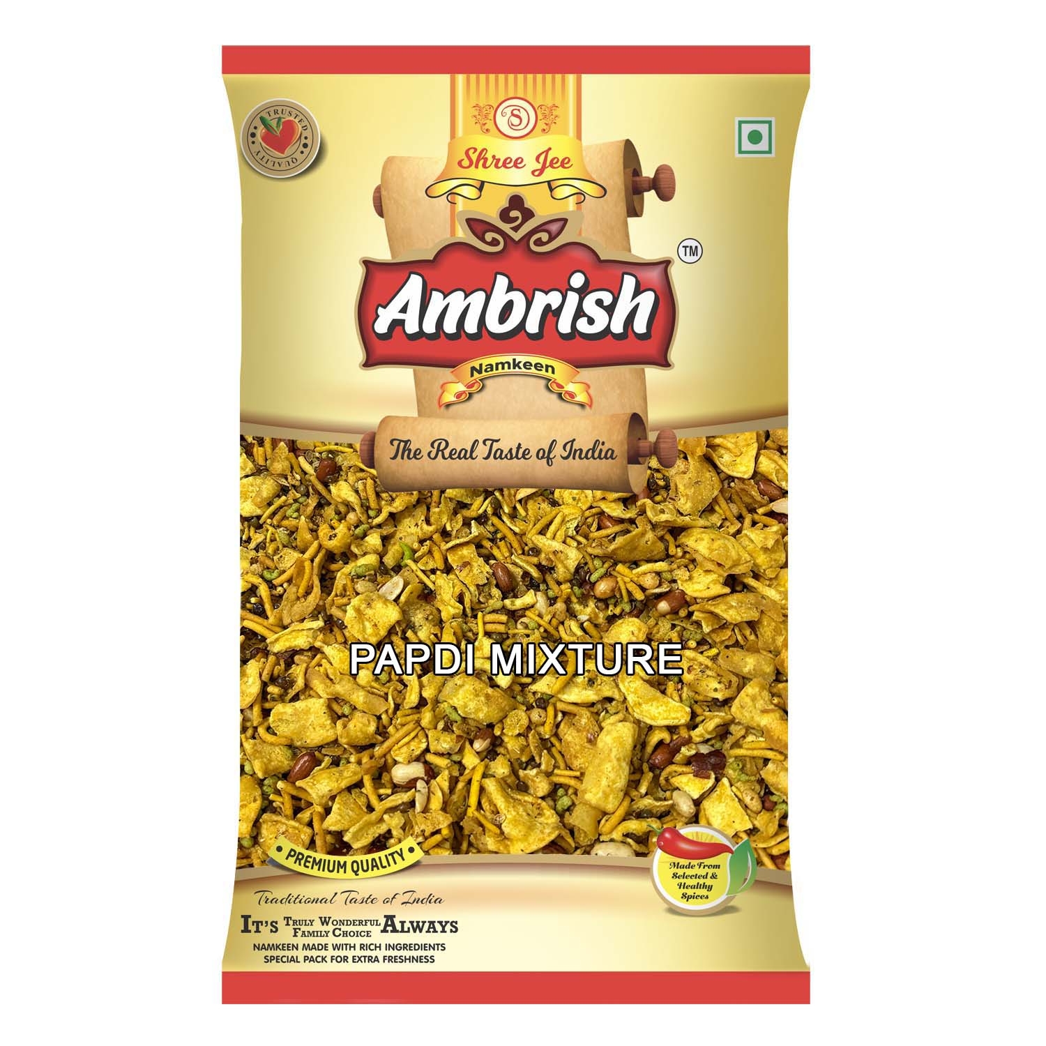 Texture: Crispy and crunchy mix with different namkeen pieces providing layered textures.