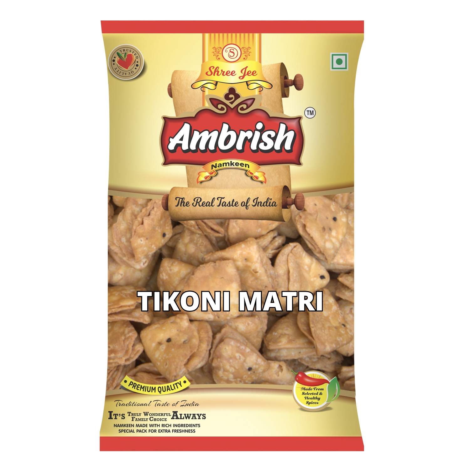Shape: Triangular (tikona) flaky pieces — distinct from round mathri